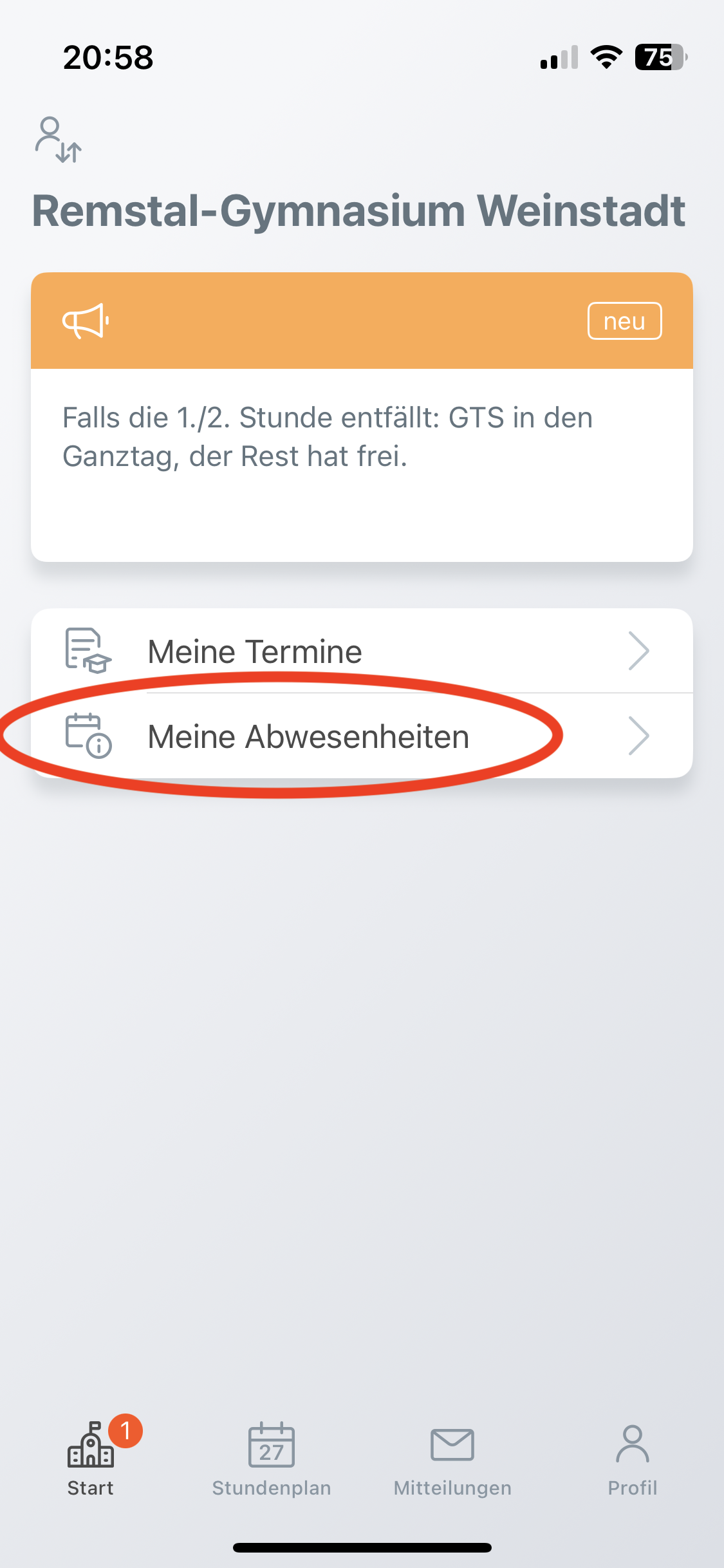 Bei einem anderen Grund muss die Klassenlehrkraft nach Sichtung des Grundes die Entschuldigung noch akzeptieren. Sie können den sonstigen Grund bei den Anmerkungen genauer ausführen.